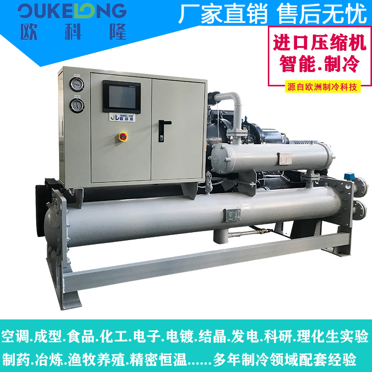 歐科隆自主研發熱回收水冷螺桿式冷水機是一款高效節能的工業制冷設備,創新性地將制冷與熱能回收相結合,實現能源梯級利用。該機型采用螺桿壓縮技術,在提供5℃~35℃冷凍水的同時,可回收60℃~80℃高溫熱水,綜合能效比達8.0以上。